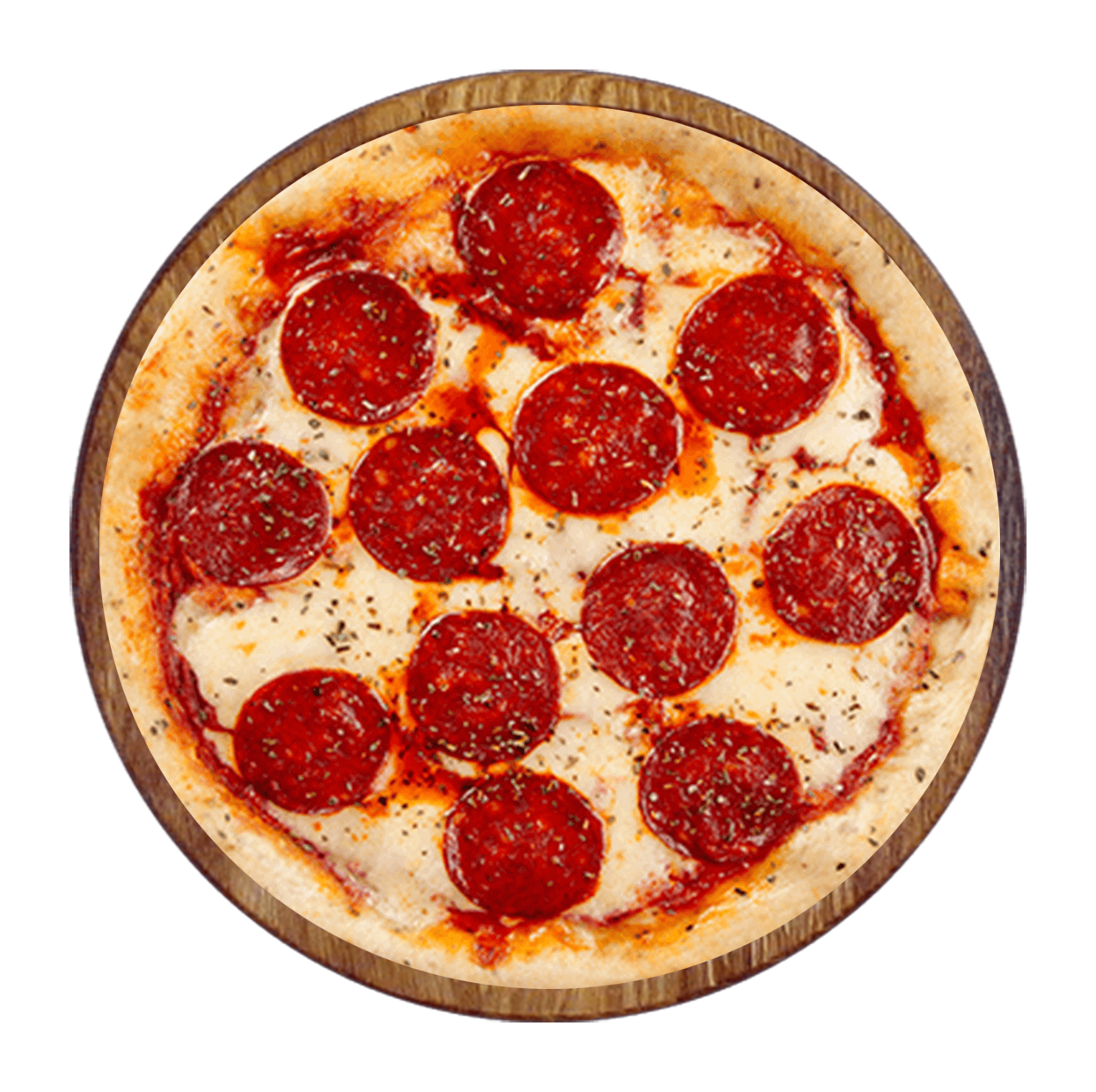 Tomate, mozzarella, pepperoni, tomates fraîches, oignons.